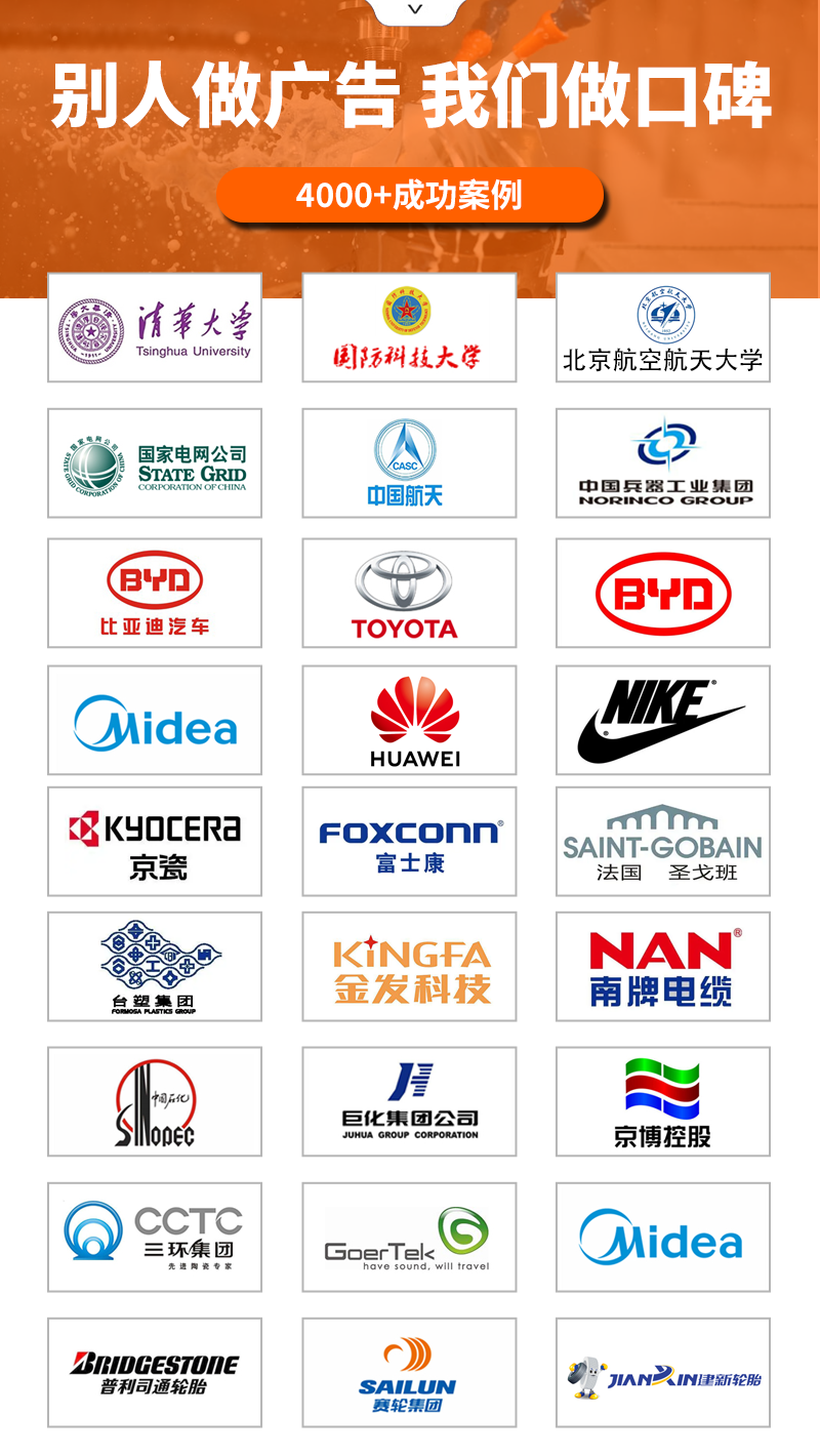 多年來公司已成功服務國內外眾多中高端客戶,如:京瓷、比亞迪、美的、金發科技、歌爾聲學、潮州三環、中國科學院、清華大學、上海大學、國防科技大學、華南理工等企業,利拿為他們提供了值得信賴的設備與服務,建立了良好的合作關系。